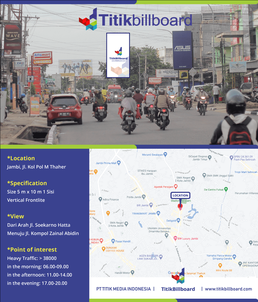 Lokasi Billboard Jambi Jl. Kol Pol MT Thaher