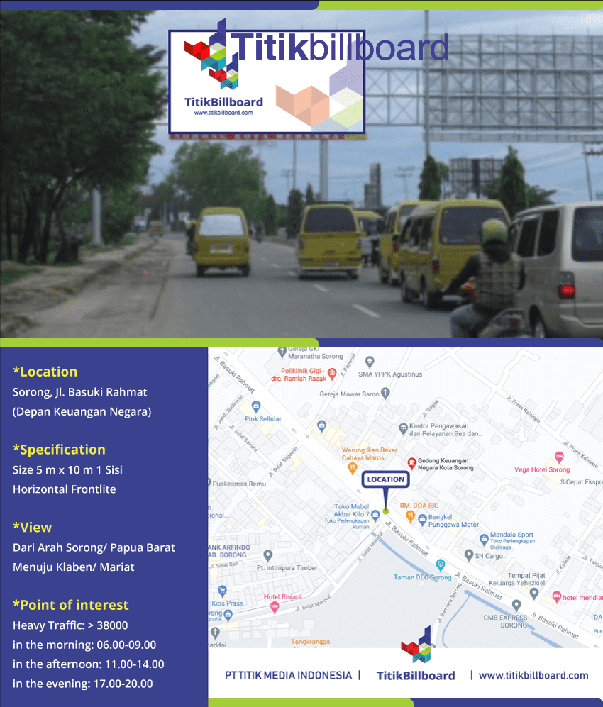 Sewa Billboard Sorong Jl. Basuki Rahmat – Depan Keuangan Negara