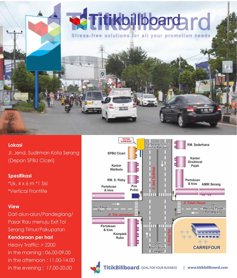 Lokasi Billboard di Serang Banten Jl. Jend. Sudirman Kota Serang Ukuran 4×6 meter View dari alun-alun atau pandeglang menuju exit tol serang timur Hubungi +6281315309991
