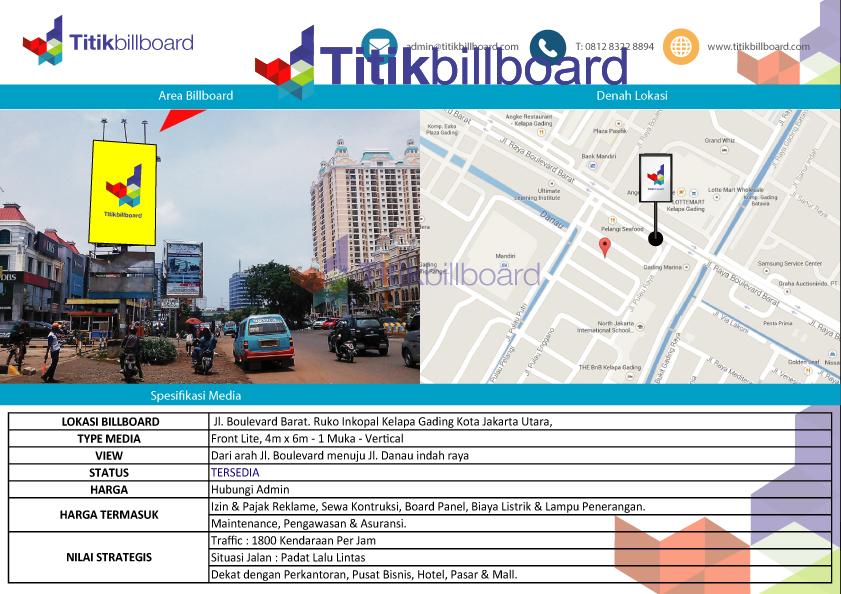 Lokasi Billboard Kepala Gading Jakarta Utara Jl. Boulevard Barat. Ruko Inkopal Kelapa Gading Kota Jakarta Utara